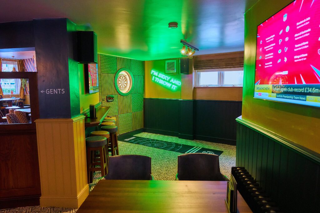 Behind the bar you’ll discover all your favourite drink brands, plus a wide choice of spirits, shots, and cocktails. With big screen TVs showing the very best in live sport, a private karaoke booth for nights you won’t forget, and two darts boards ready for some friendly competition, there’s always something happening.